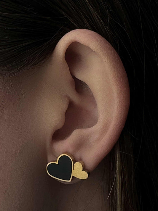 Boucles D'oreilles Acier Argenté Cristal Noir