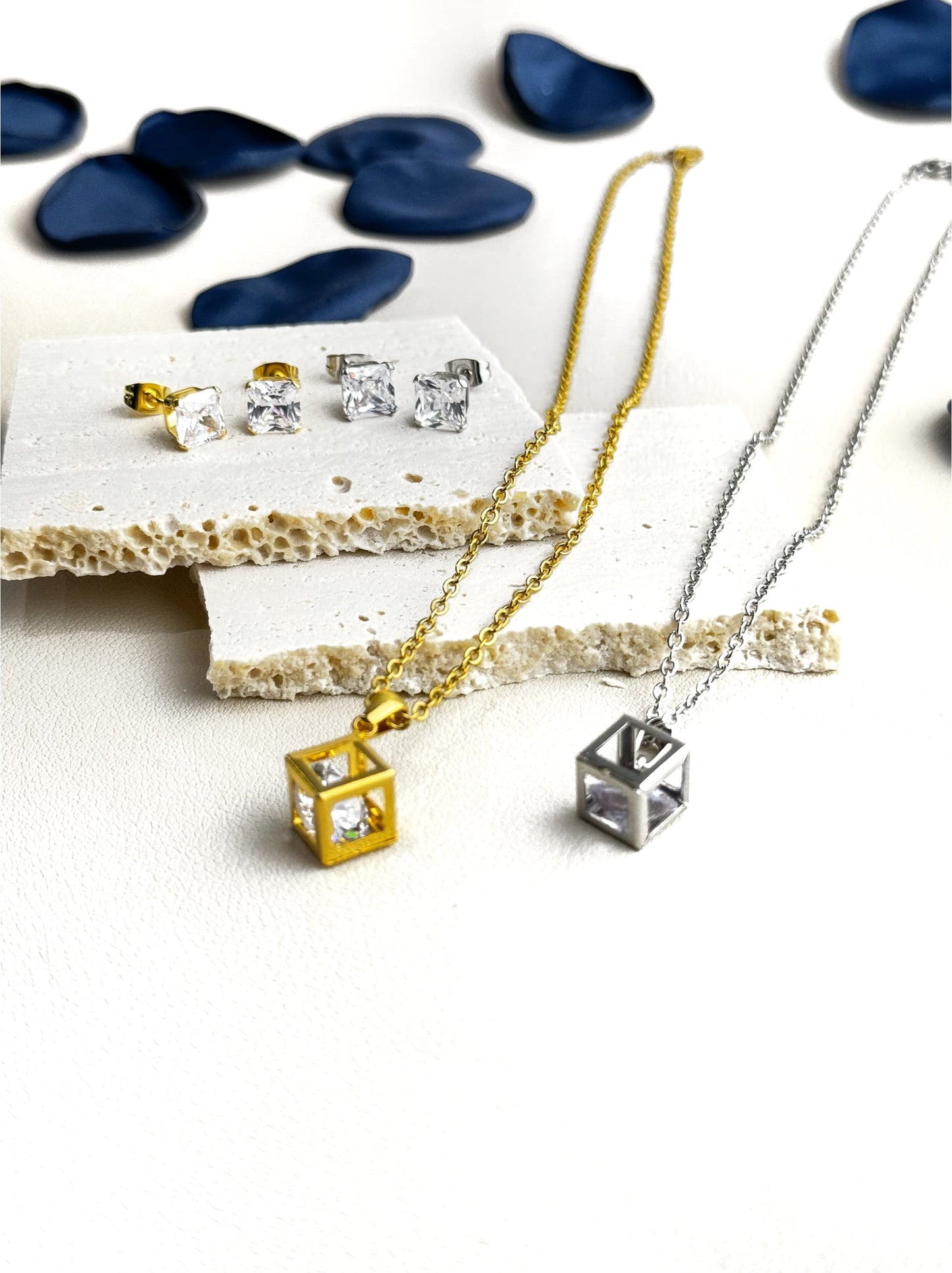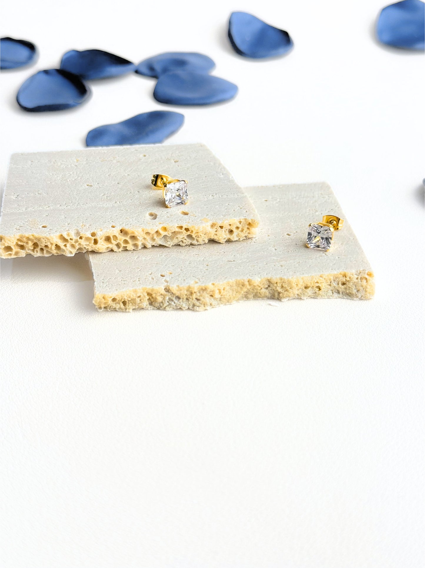 Boucles d'oreilles en acier doré avec zircone