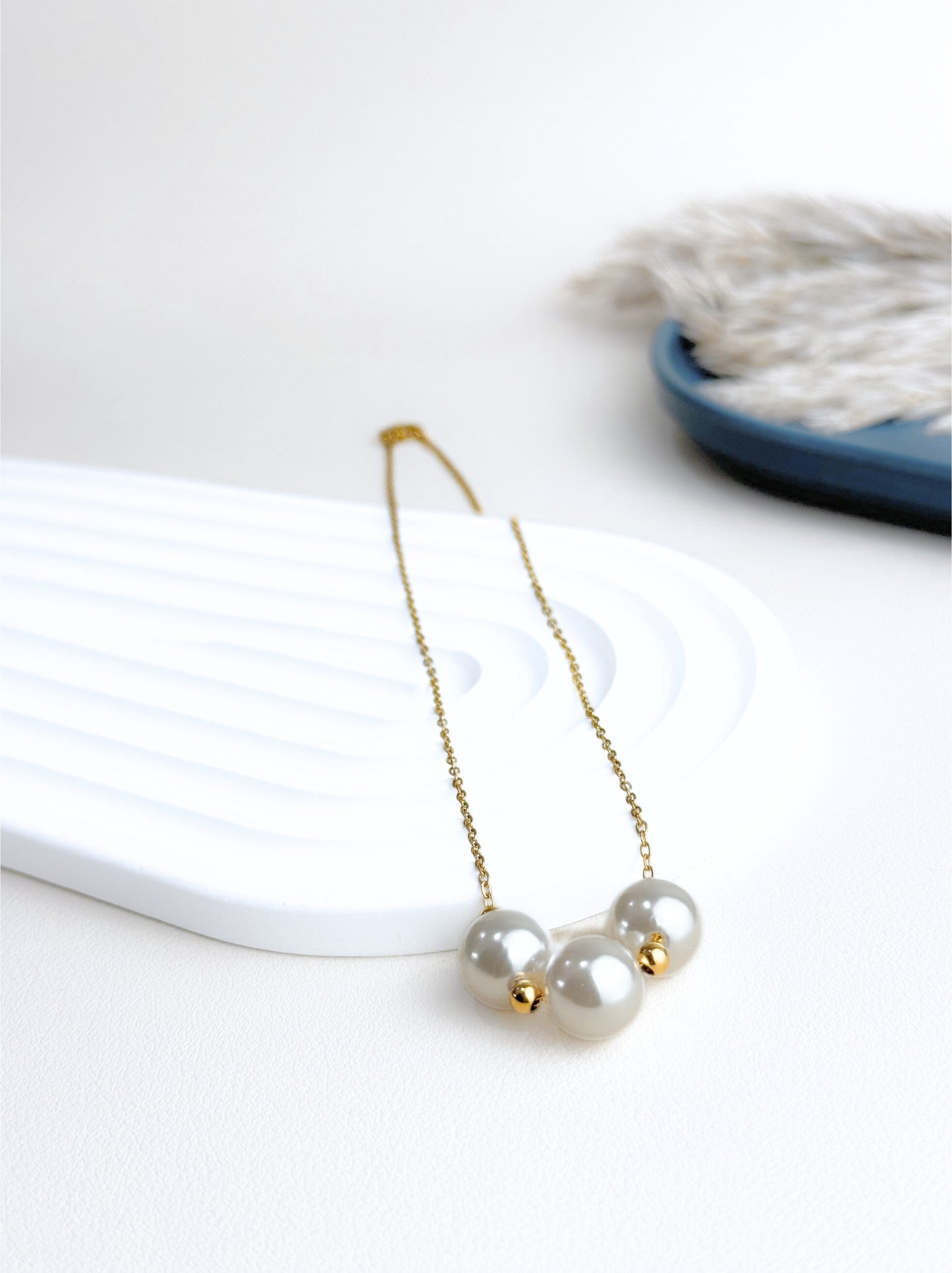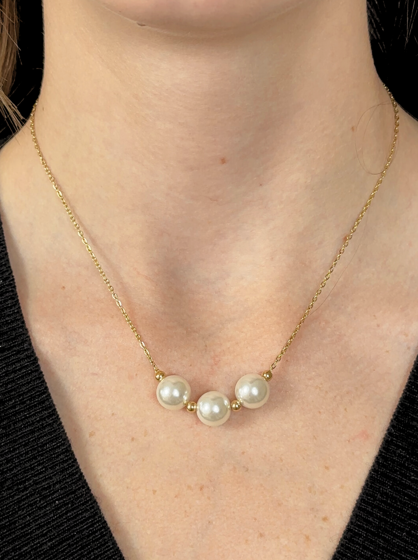 Collier en acier doré avec perles