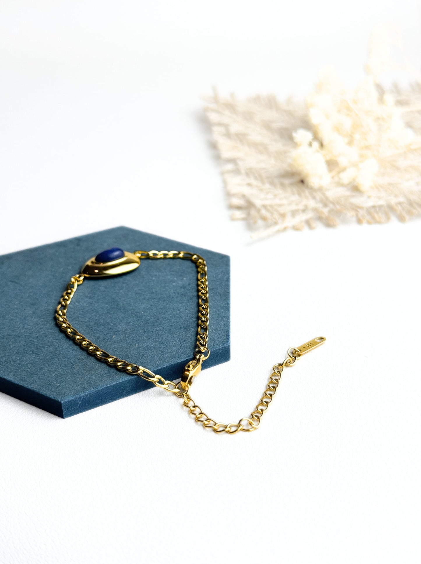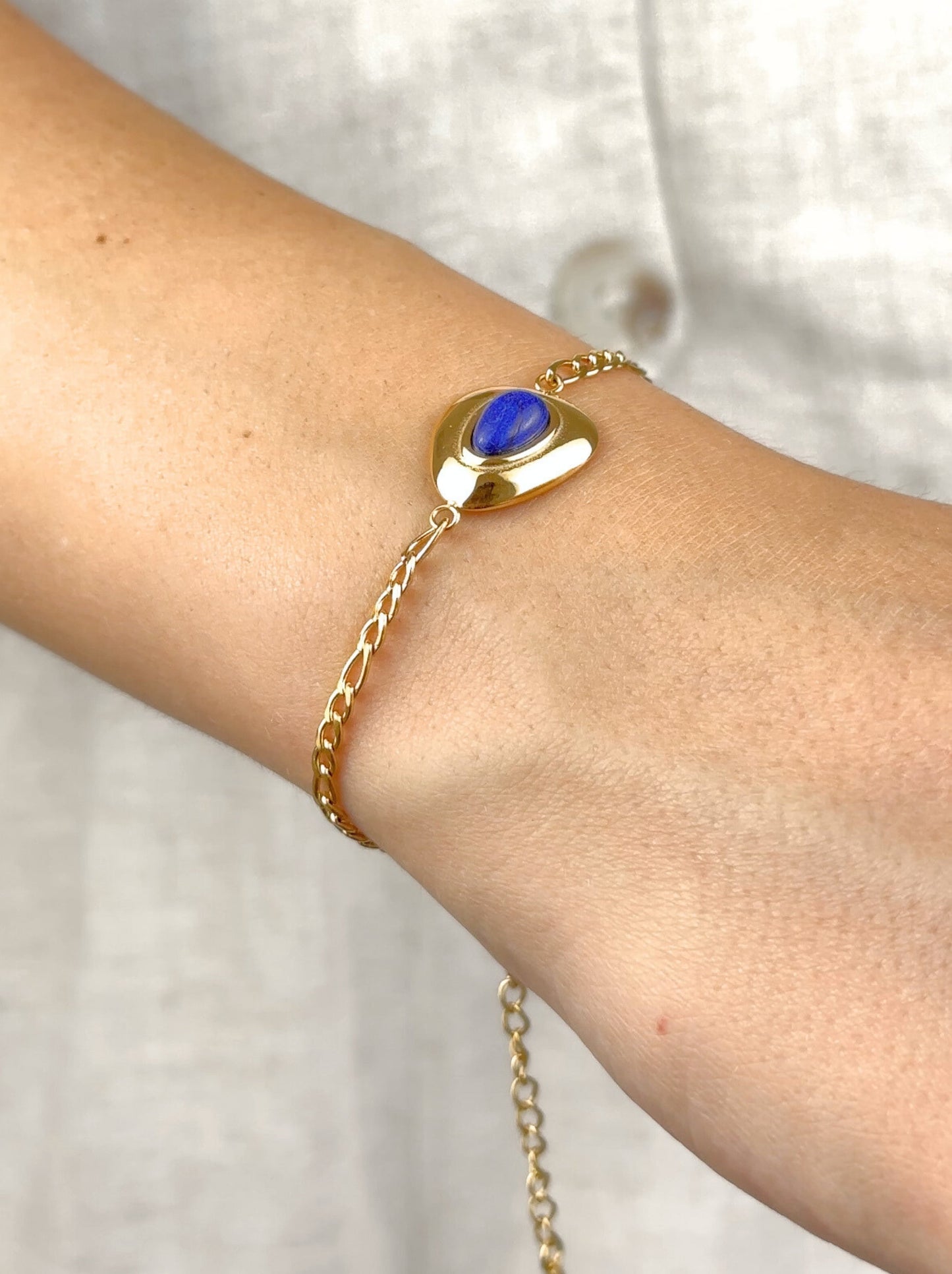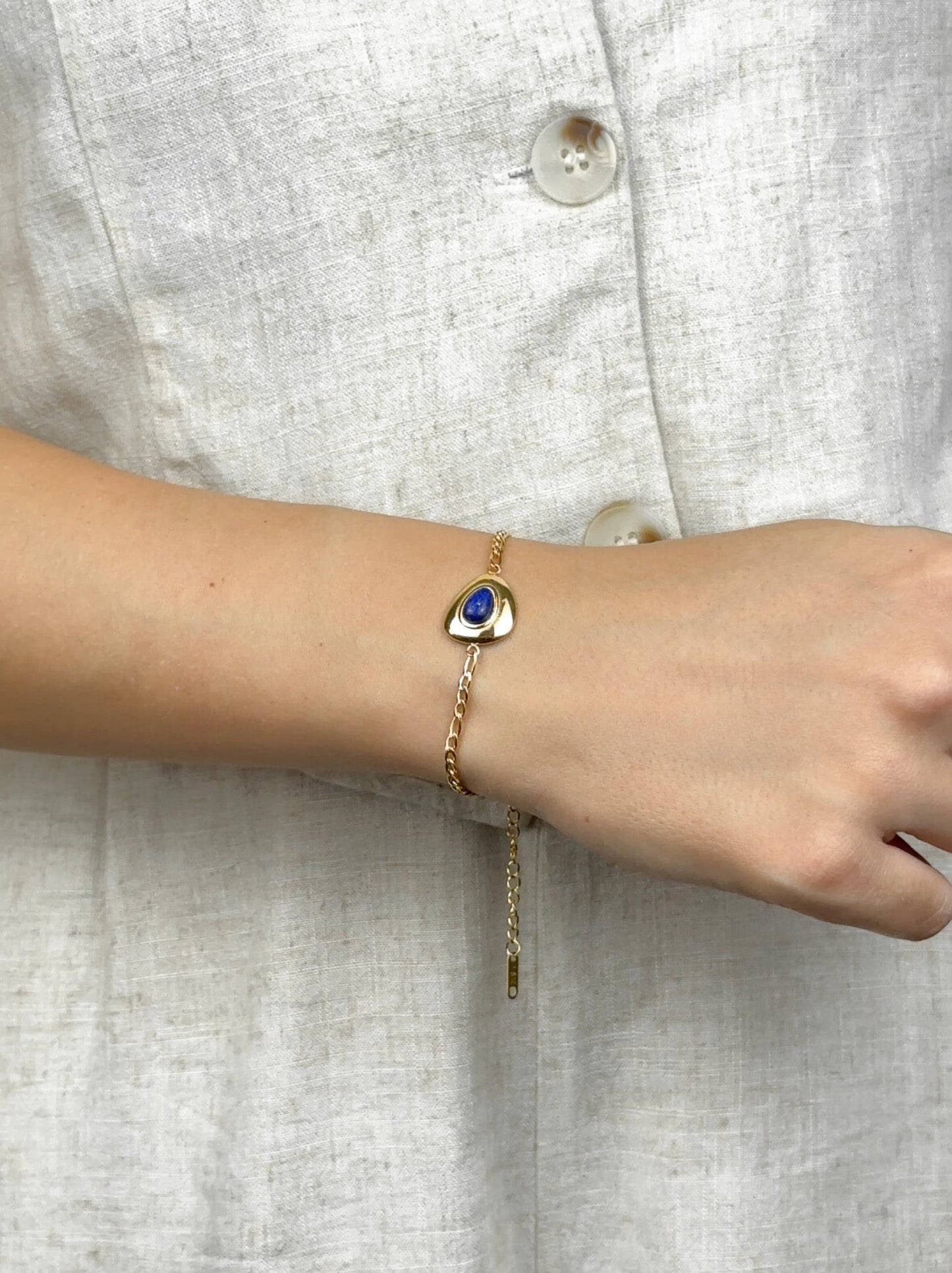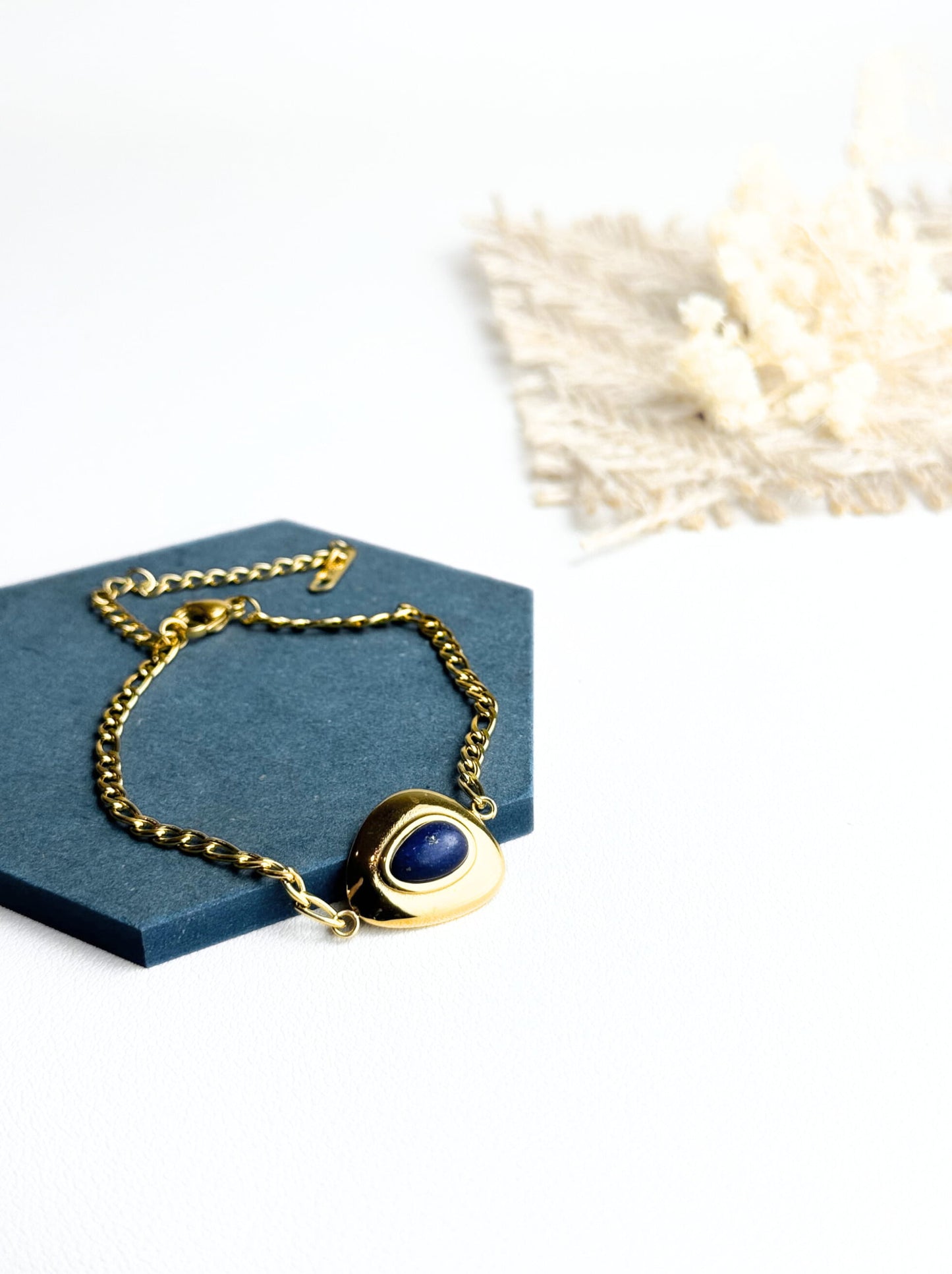 Bracelet acier doré avec pierre bleue