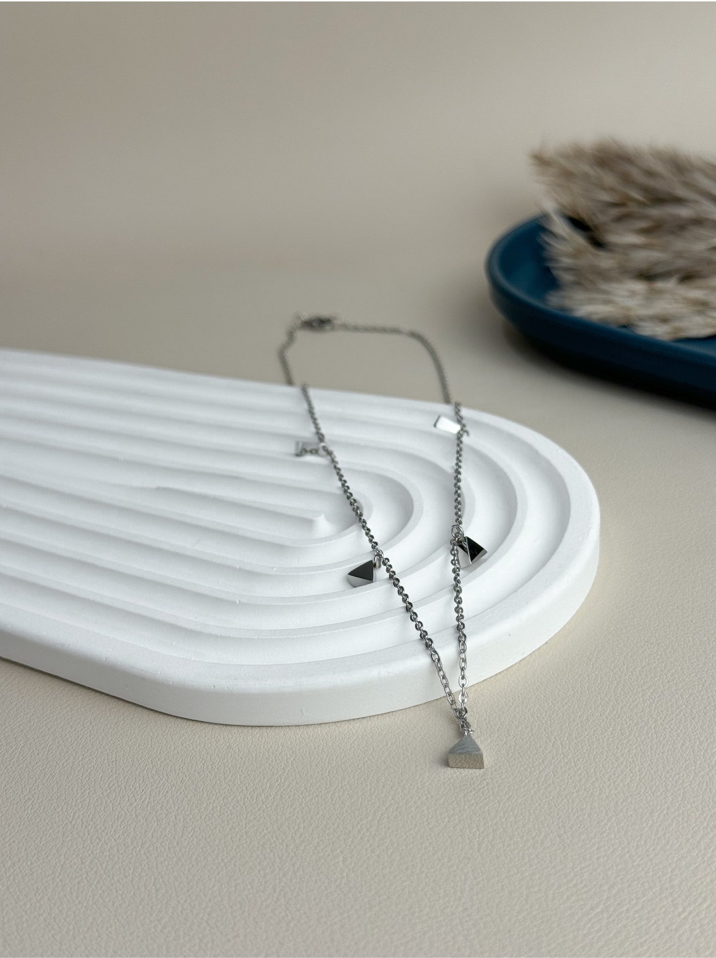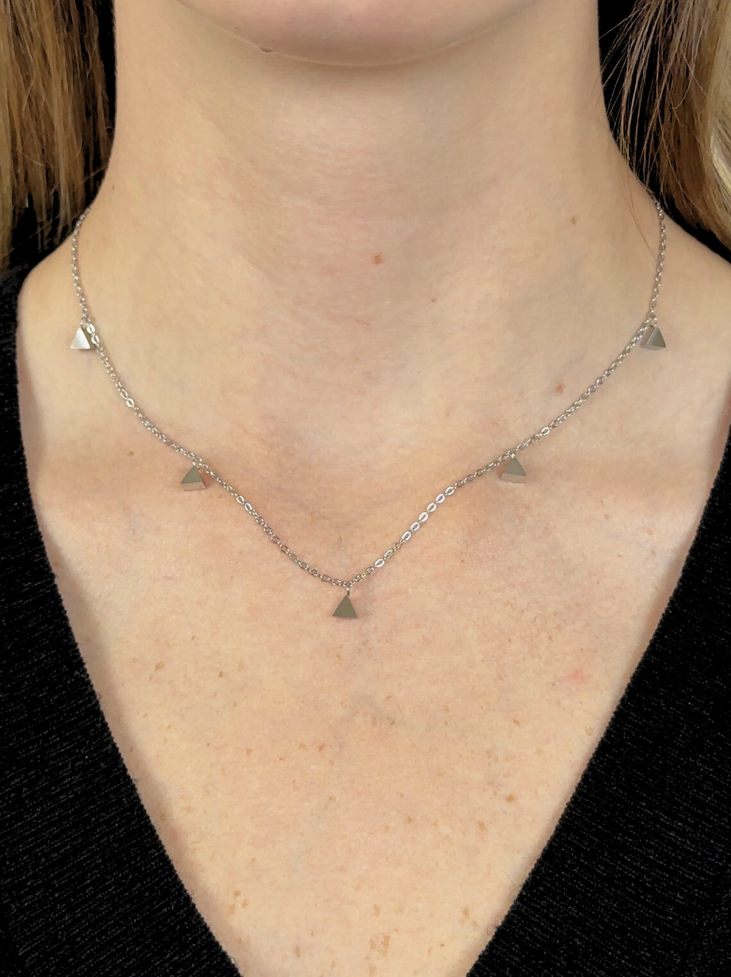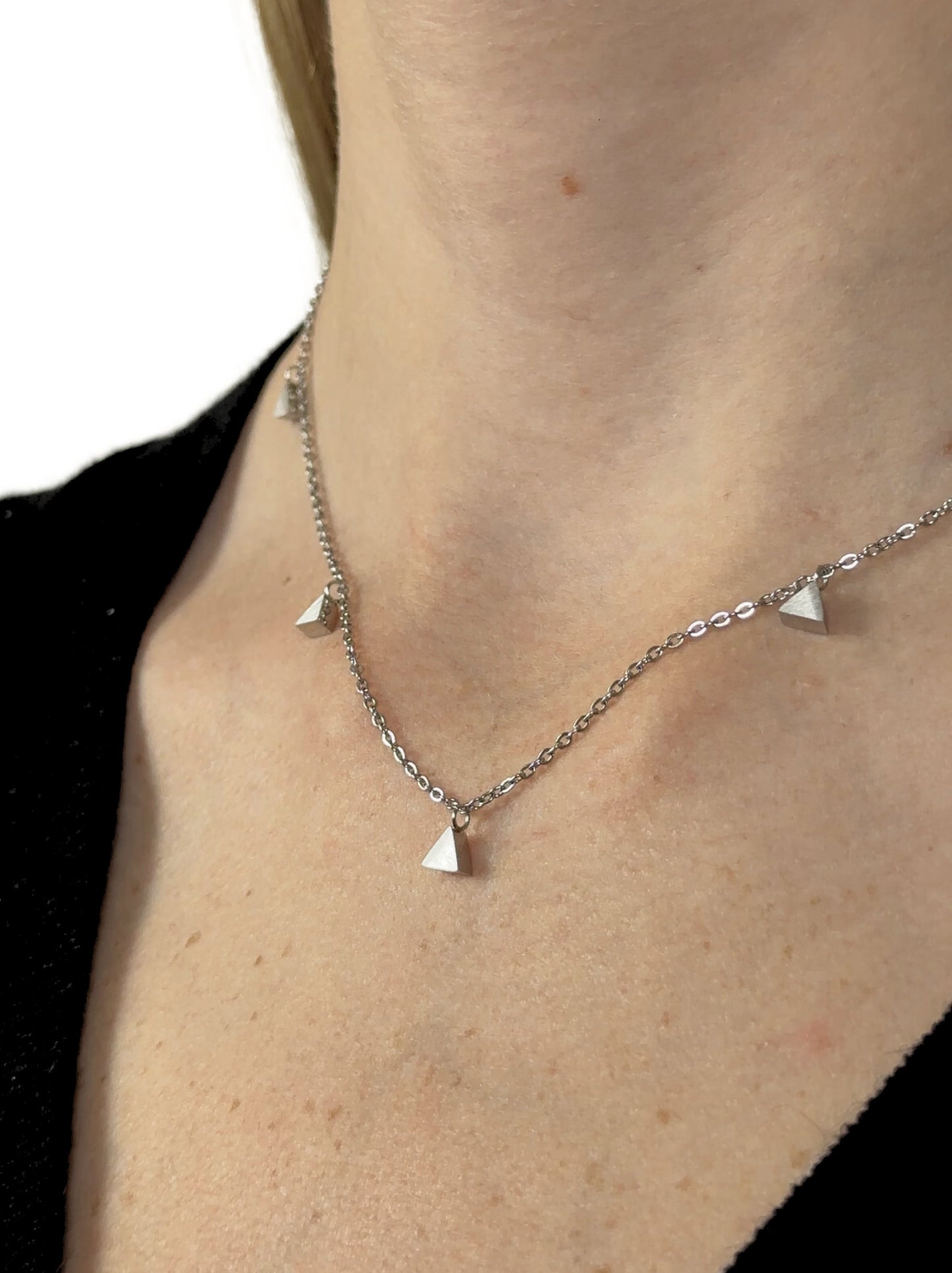 Colar de aço prateados com triângulos lisos