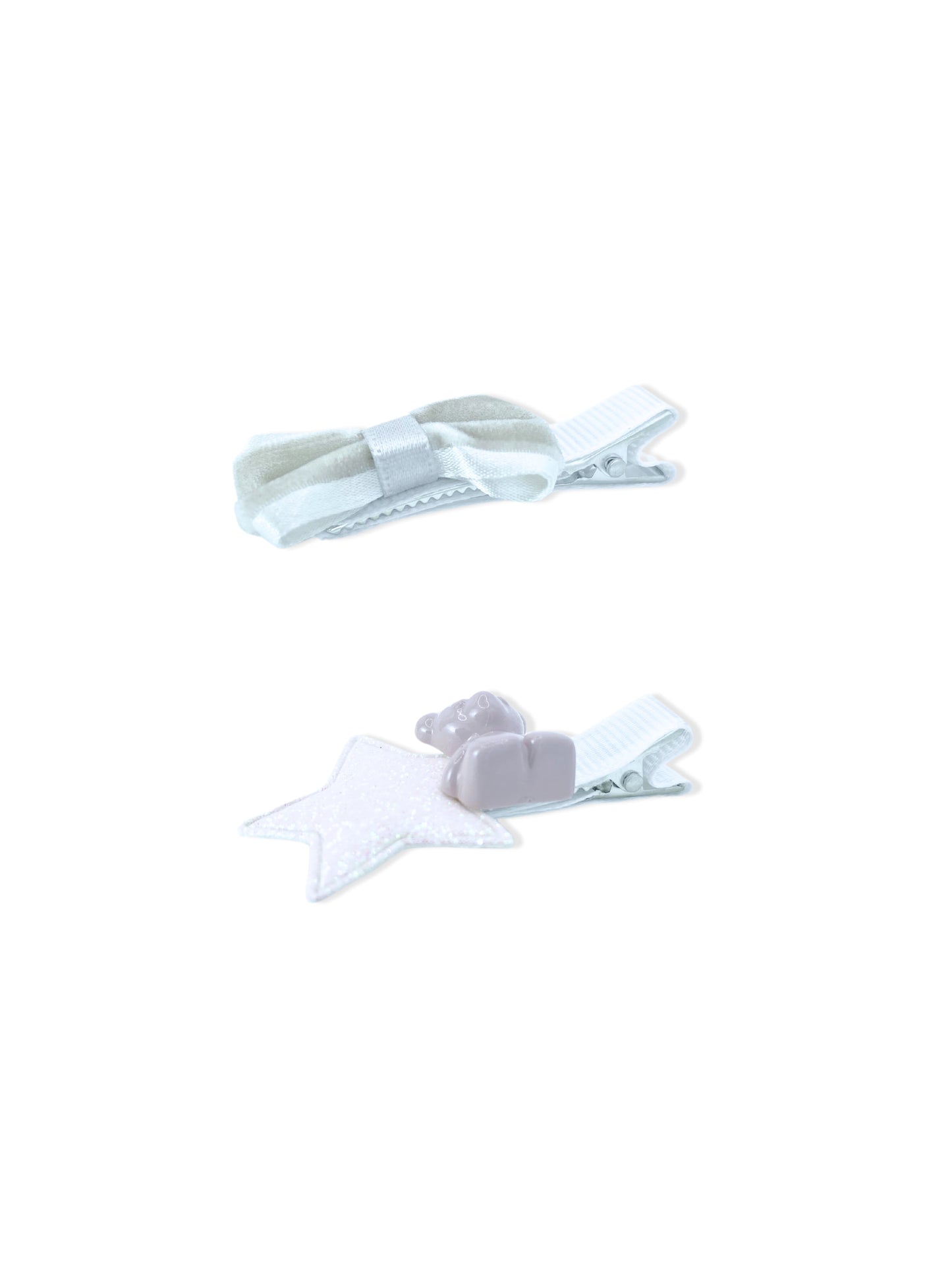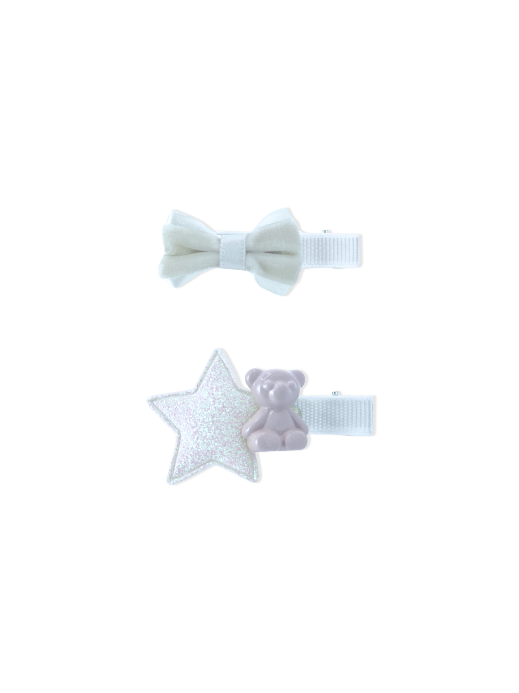Set de pinças brancas de cabelo com laço e urso