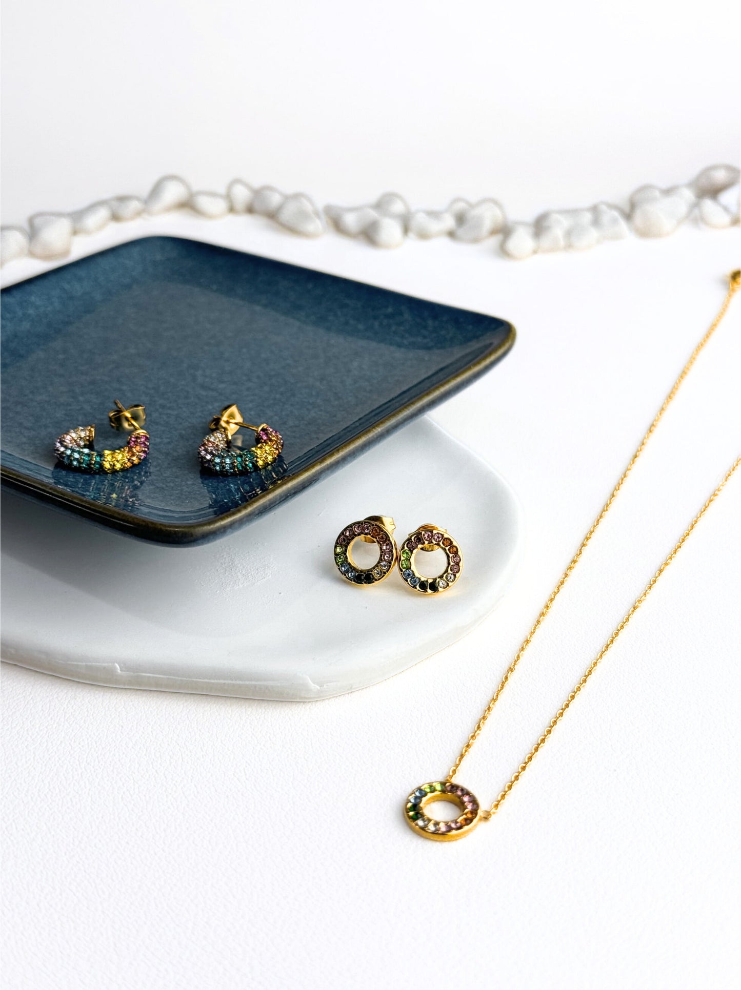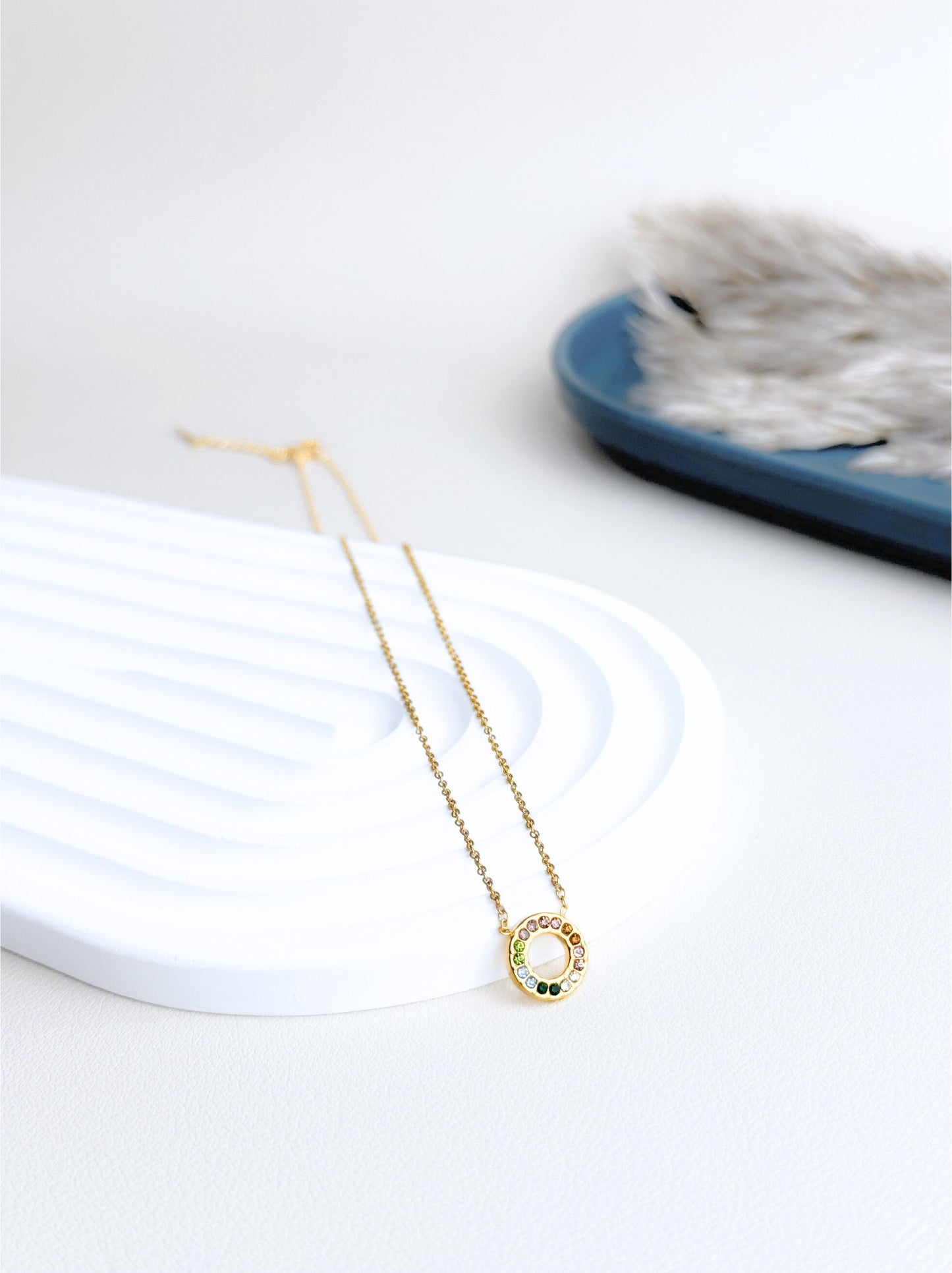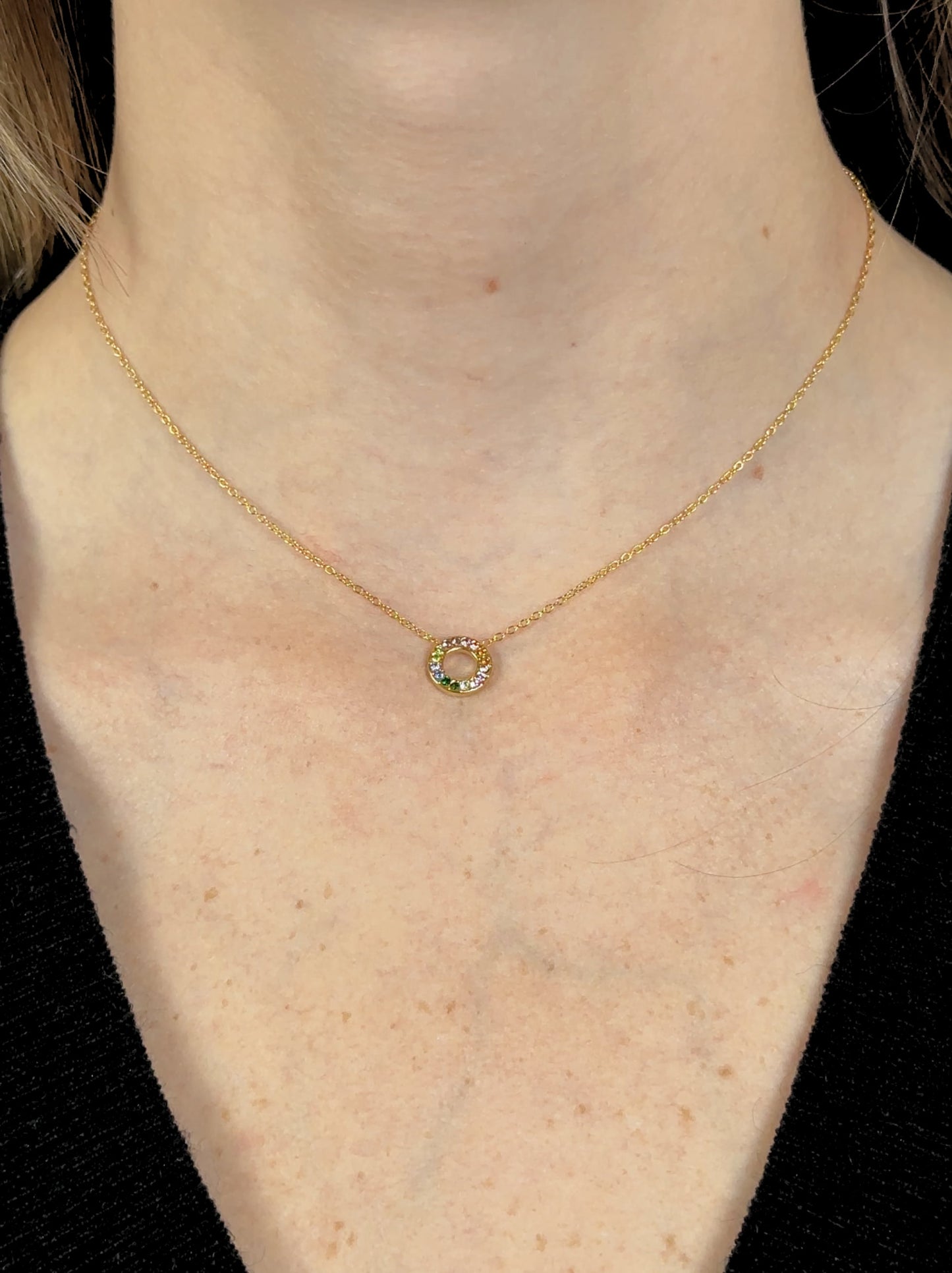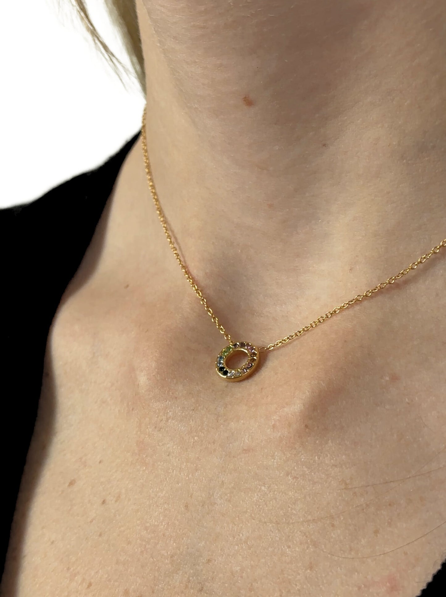 18K Gold - Colar de aço dourado colorido com zircônia