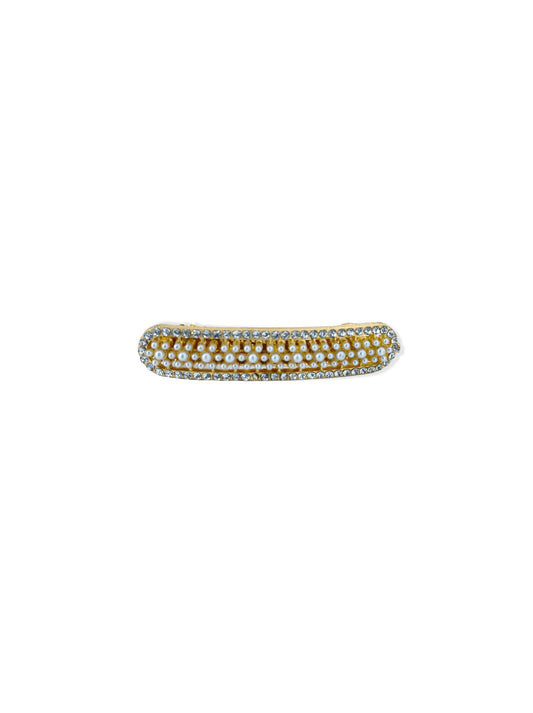 Mola francesa dourada com pérolas e cristais